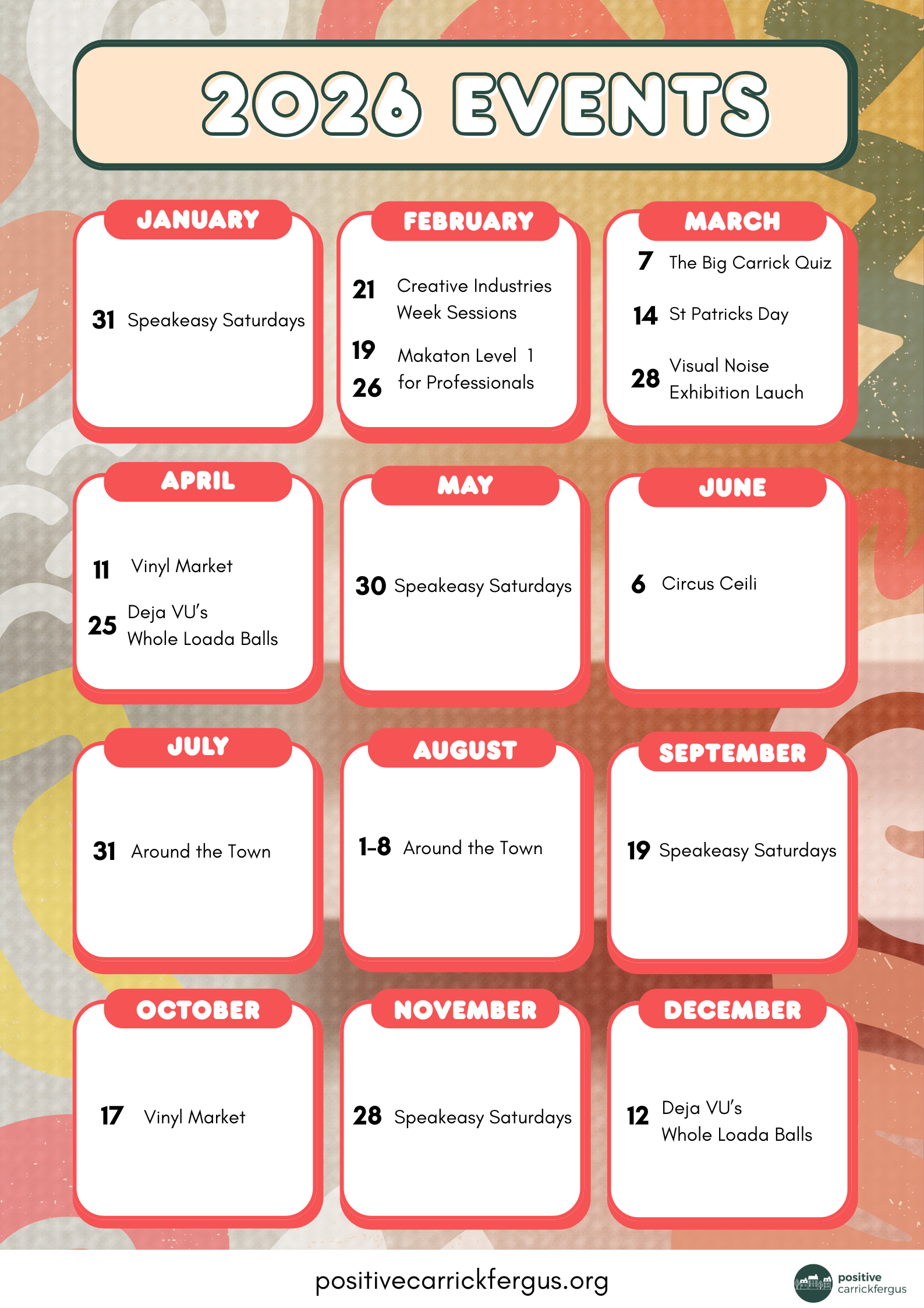 The event is part of their monthly events program which aims to bring music and entertainment to the town centre each month while supporting level musicians and entertainers working together to build music scene in the town. You can find out more about their program at positivecarrickfergus.org